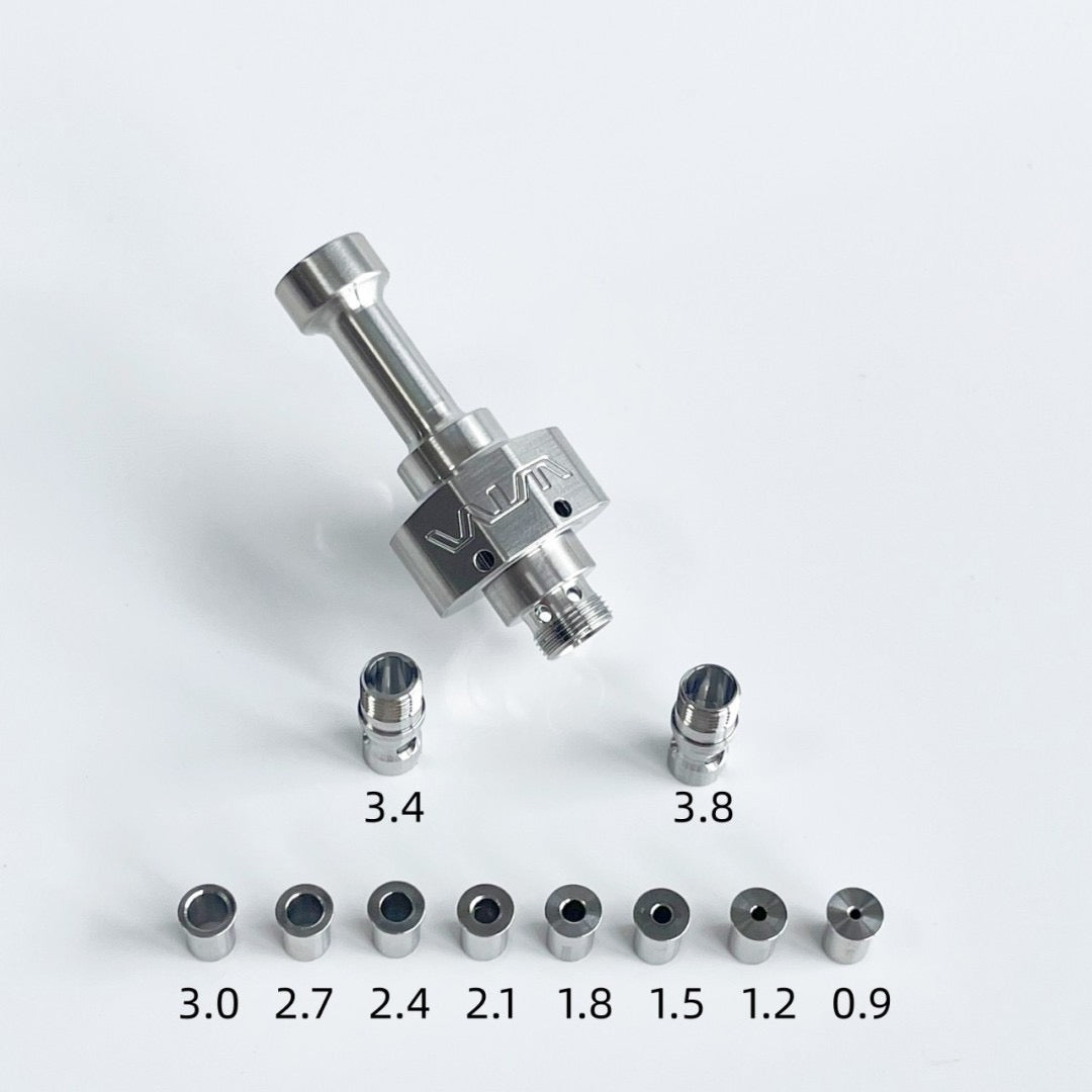 包括 10 種氣流選項:3.8mm、3.4mm、3.0mm、2.7mm、2.4mm、2.1mm、1.8mm、1.5mm、1.2mm、0.9mm