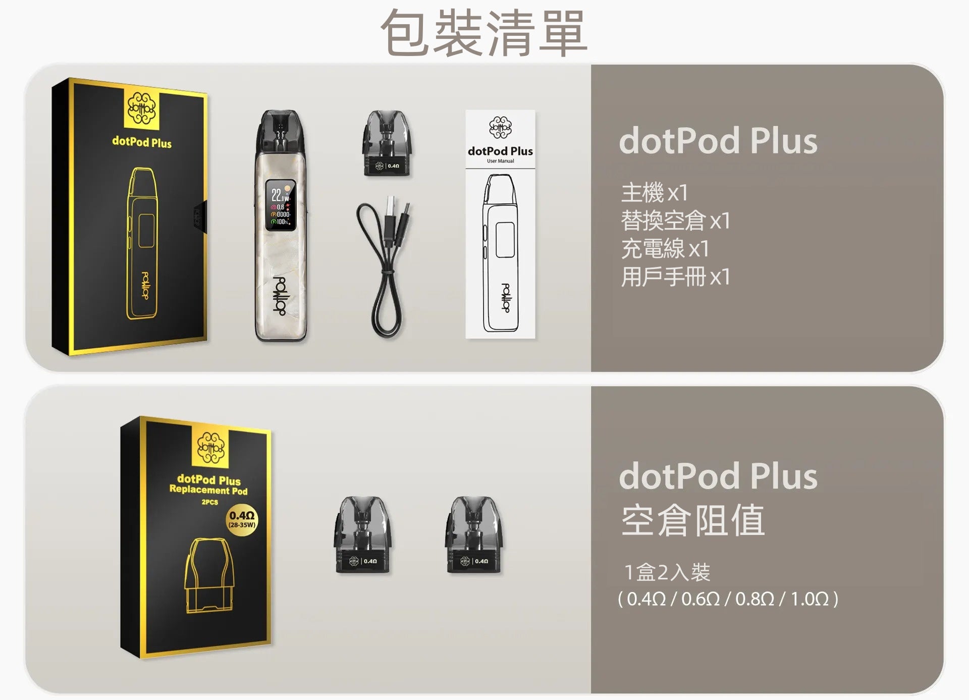 Dotpod Plus 以金屬紋理面板打造奢華質感,搭配強勁性能與智能設計,帶來更舒適、穩定且個性化的霧化體驗。