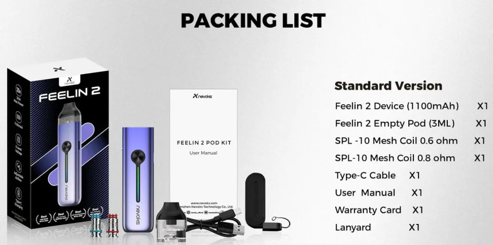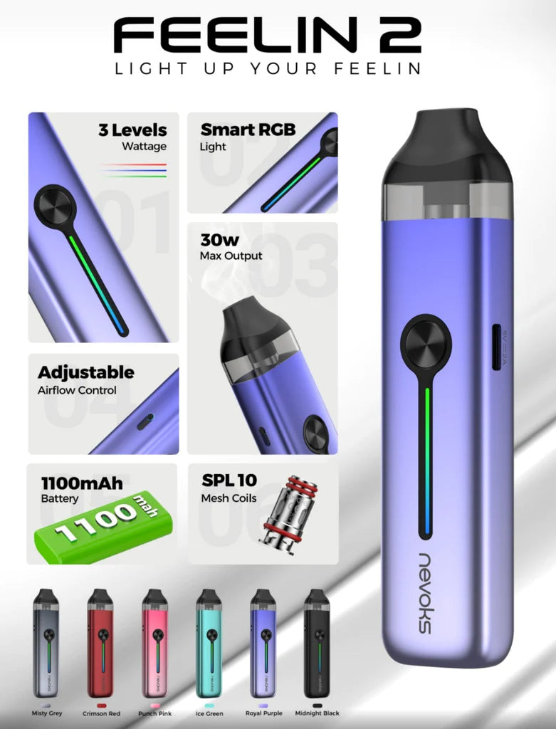在Feelin的基礎上做了全新升級,功率高達30W;側邊氣流調節可以實現MTL和DTL的自由切換;RGBRGB燈條精準提示電池電量和設備狀態